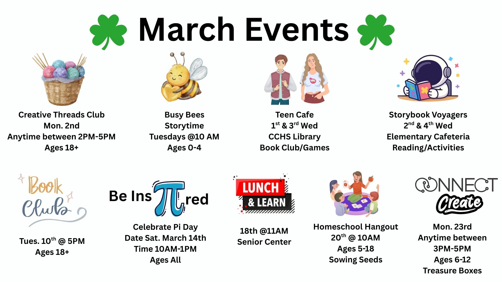 Our collection includes Fiction and Non-Fiction books and magazines for Children and Adults of all ages as well as a special collection of Kentucky Literature. For those interested in Genealogy, we have a Genealogy Room for research of local families. We also have a large selection of DVD or Blue-Ray movies for check-out. CCPL provides free use of computers, Internet, and WiFi, and, for a nominal fee, we offer printing, copying and faxing services.